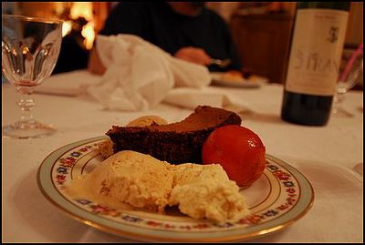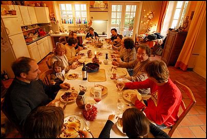 Champagne et toasts rillette de thon en fait la bouche. Première et petite entrée d'un tripoux et sa noix de coquille St Jacques, puis saumon fumé d'Ecosse et saumon mariné Gravlax de la rade de Cherbourg, aneth de chez Mme Tanquin, mon ancienne institutrice, Coteaux du Languedoc Blanc Ch. St Martin de la Garrigue . En plat, un jambon de cochon de lait de Bayeux roti, marrons, chou rouge braisé, Médoc Ch. Citran 1997. En dessert les glaces maison, au caramel salé, au sucre cassonade et canelle, à la vanille des Isles, gateau au chocolat, mandarines marinés aux épices. Rien que du bon !